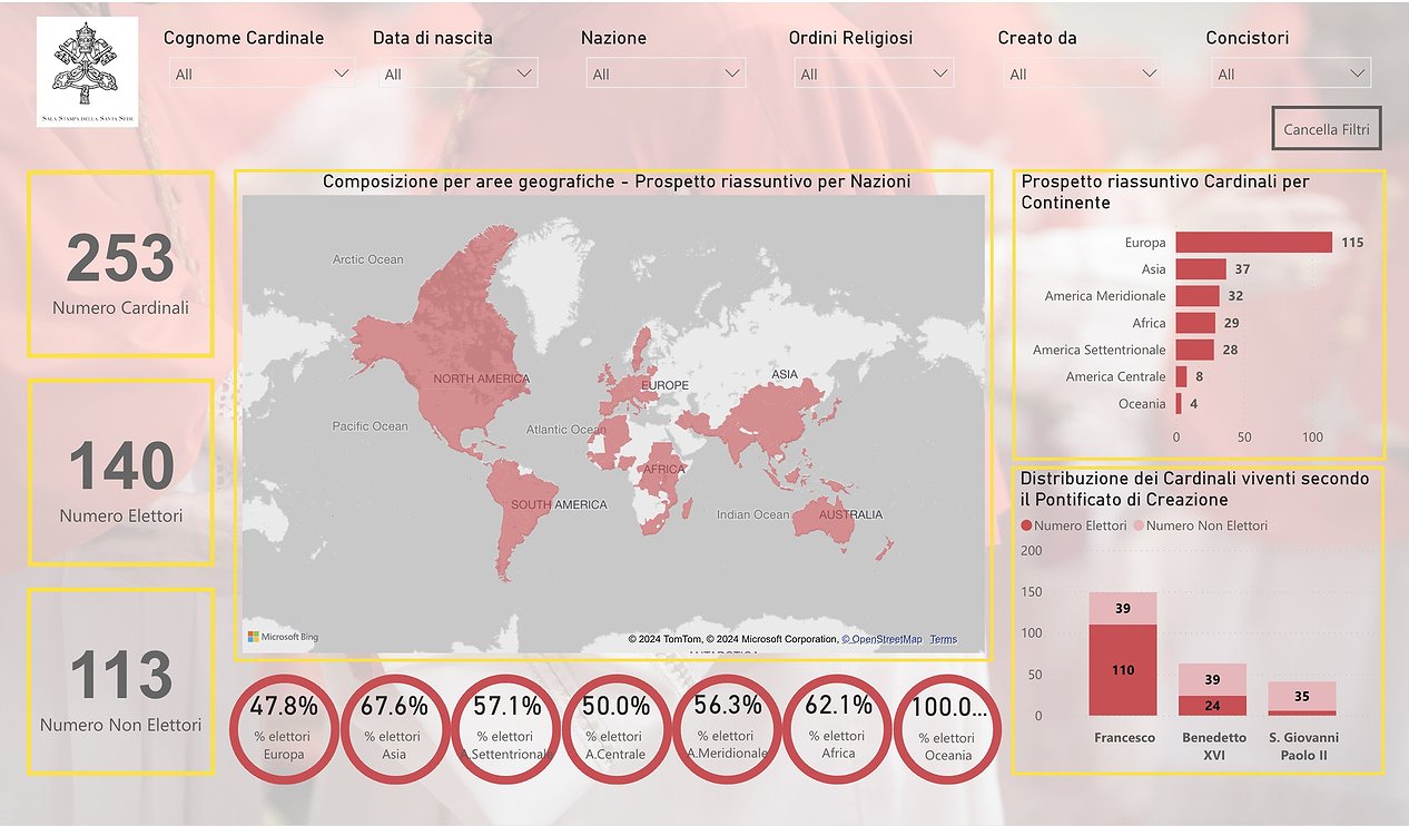 The dashboard, created with Microsoft Power BI – an AI tool designed to visually organize data – was published on the Vatican press office's public website just two days before Pope Francis was scheduled to create 21 new cardinals Dec. 7.