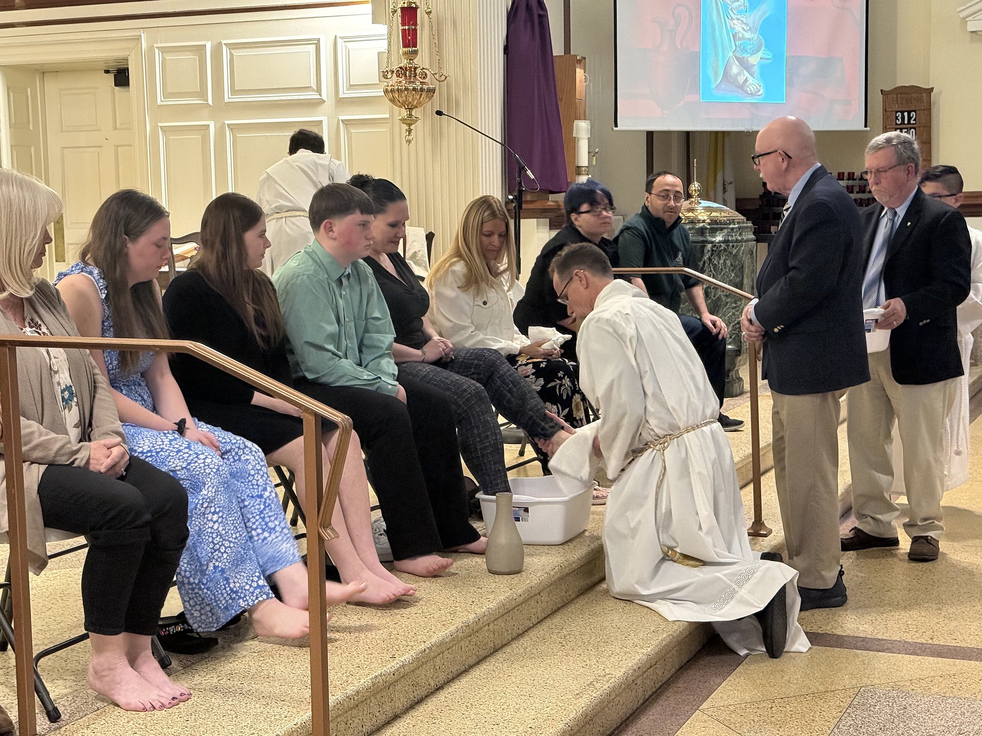 Remembering Christ’s call to serve, Father Wilson knelt to wash the feet of youth group members, modeling the very servant leadership Christ offered on Holy Thursday.