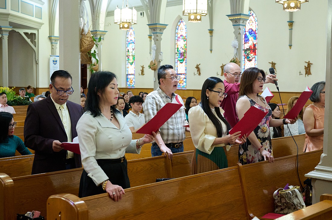 While the Mass is typically celebrated at 5 p.m., on Easter Sunday, the faithful gathered at 3 p.m. for the bilingual Mass that was celebrated in English and Vietnamese by Father Luke Duc Tran.