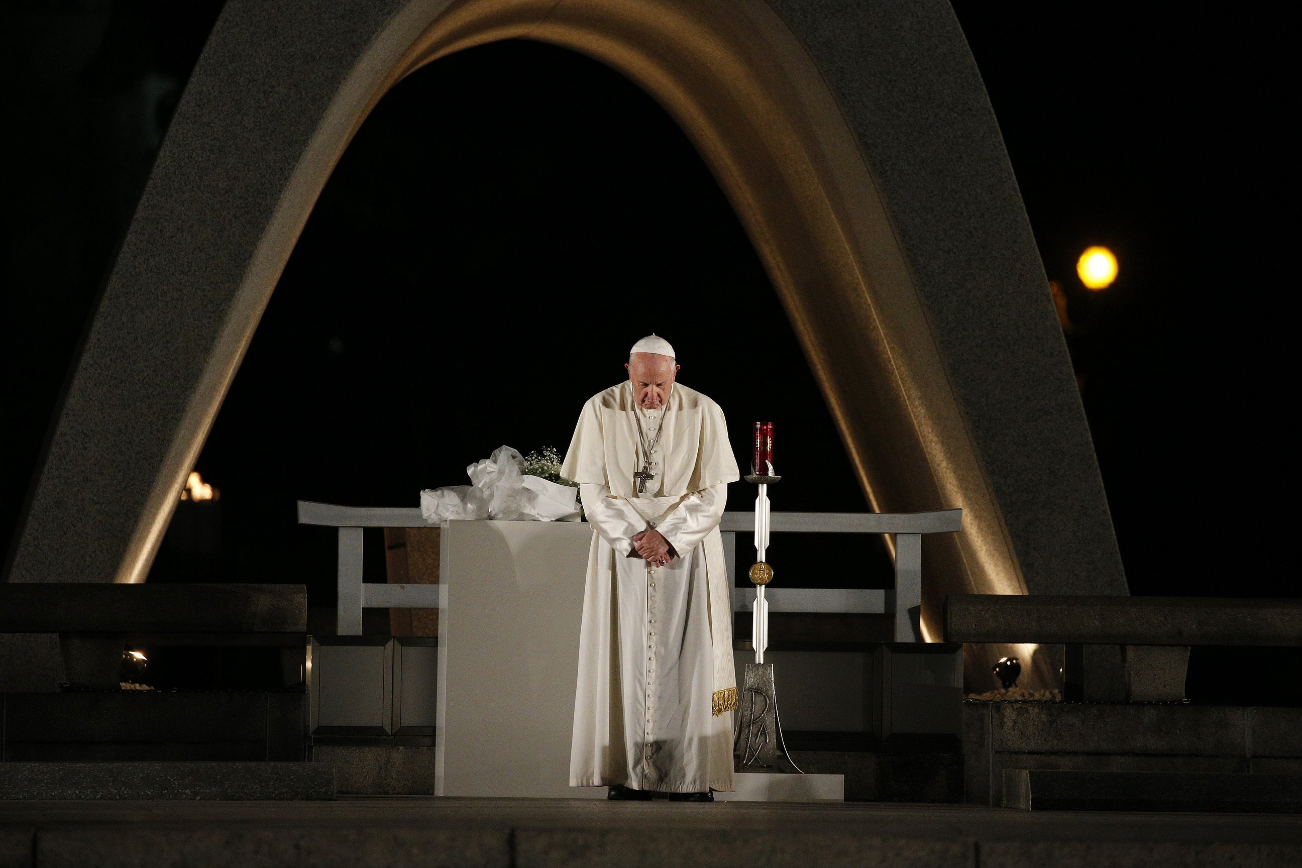 "True peace demands the courageous laying down of weapons – especially those with the power to cause an indescribable catastrophe," the Pope wrote in a message to Bishop Alexis Mitsuru Shirahama of Hiroshima.