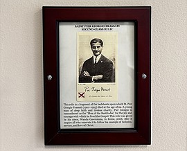 In the Frassati Youth Hall at St. David the King Parish, Princeton Junction, a second-class relic of St. Pier Giorgio is on display for all to visit and venerate – a reminder that holiness is never far from us, for the saints walk with us on the journey to heaven.