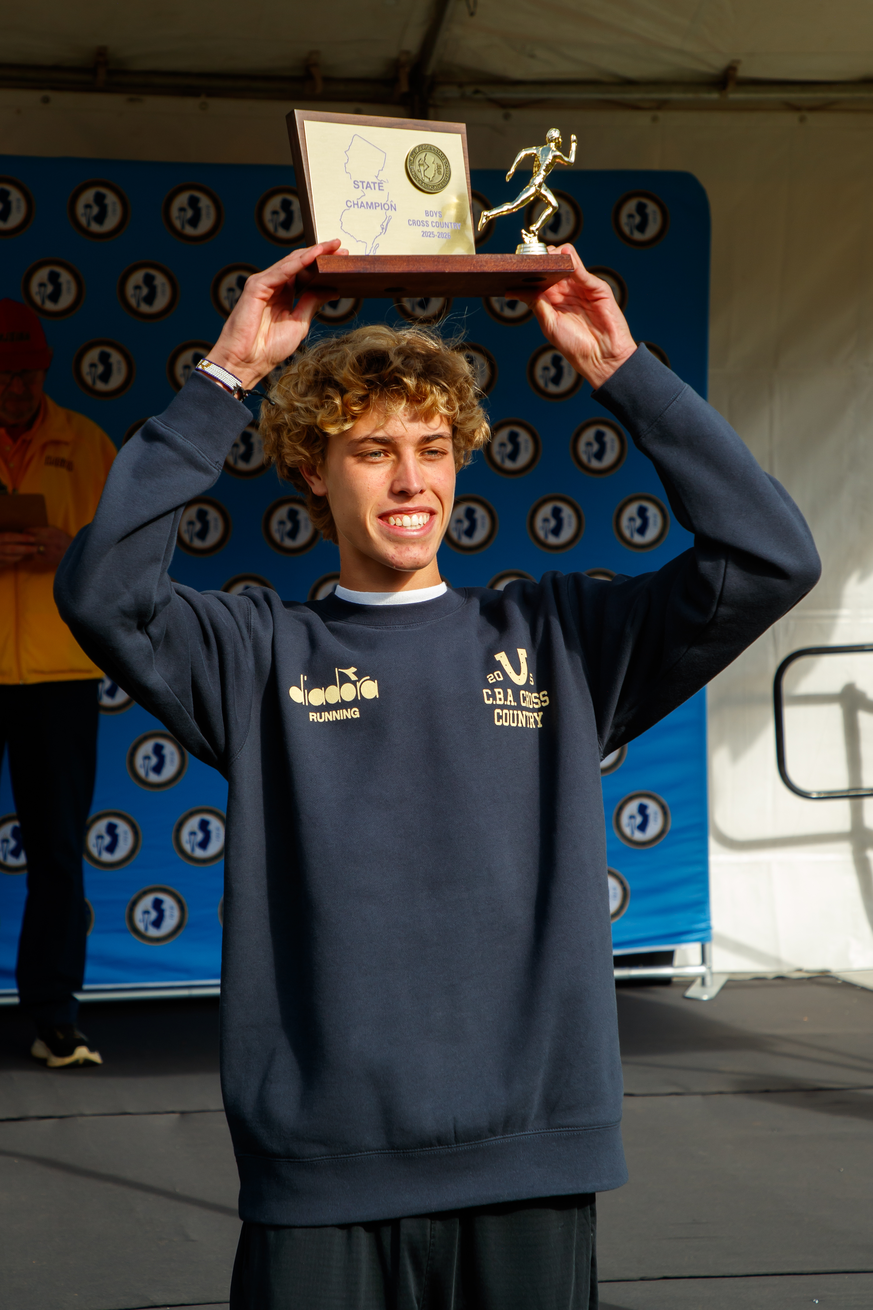 CBA senior Luke Hnatt proudly hoists his trophy after becoming the third straight Colts runner to win an individual Meet of Champions title. Photo by Larry Levanti/https://larrylevanti.comCollins has stepped up his intensity after “I had trouble getting him to practice freshman and sophomore year. He’s come such a long way in his dedication to his team.”