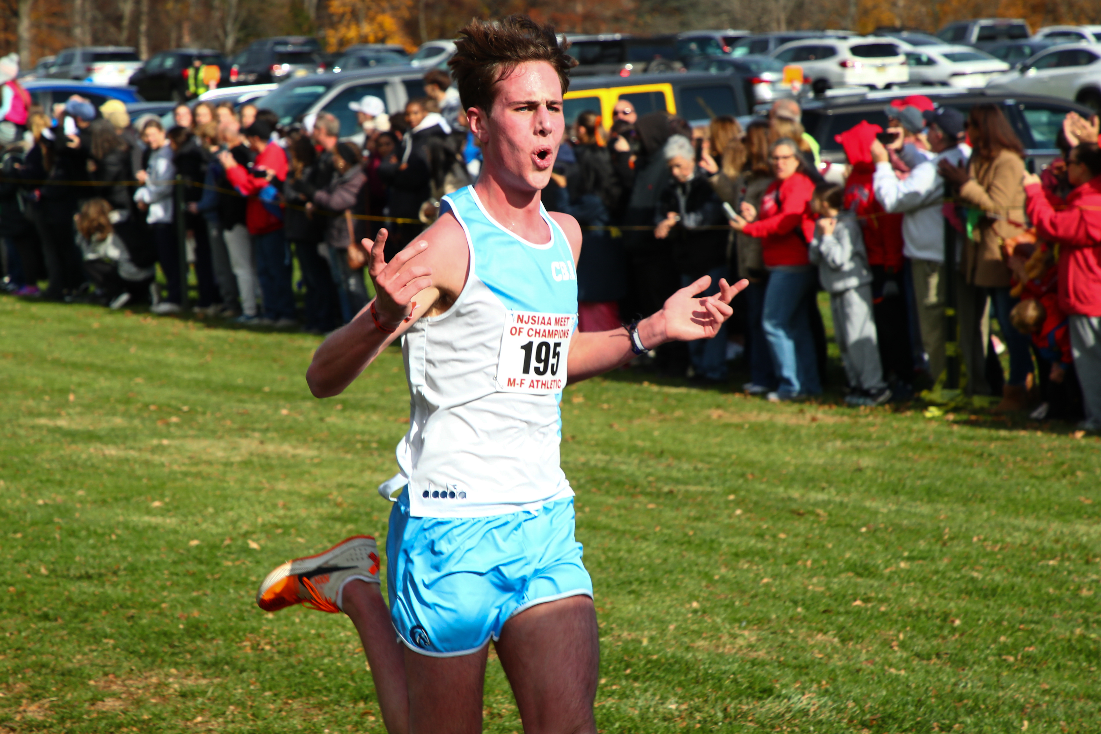 CBA junior Gavin Schmitt heads for a second-place finish at the NJSIAA Meet of Champions. Photo by Larry Levanti/https://larrylevanti.com“The Bowdoin pace, that was wild how well they ran there,” McCafferty said. “That course is slower than Holmdel by quite a bit. And for them to almost average the same time as they did at the Meet of Champs was nuts.
