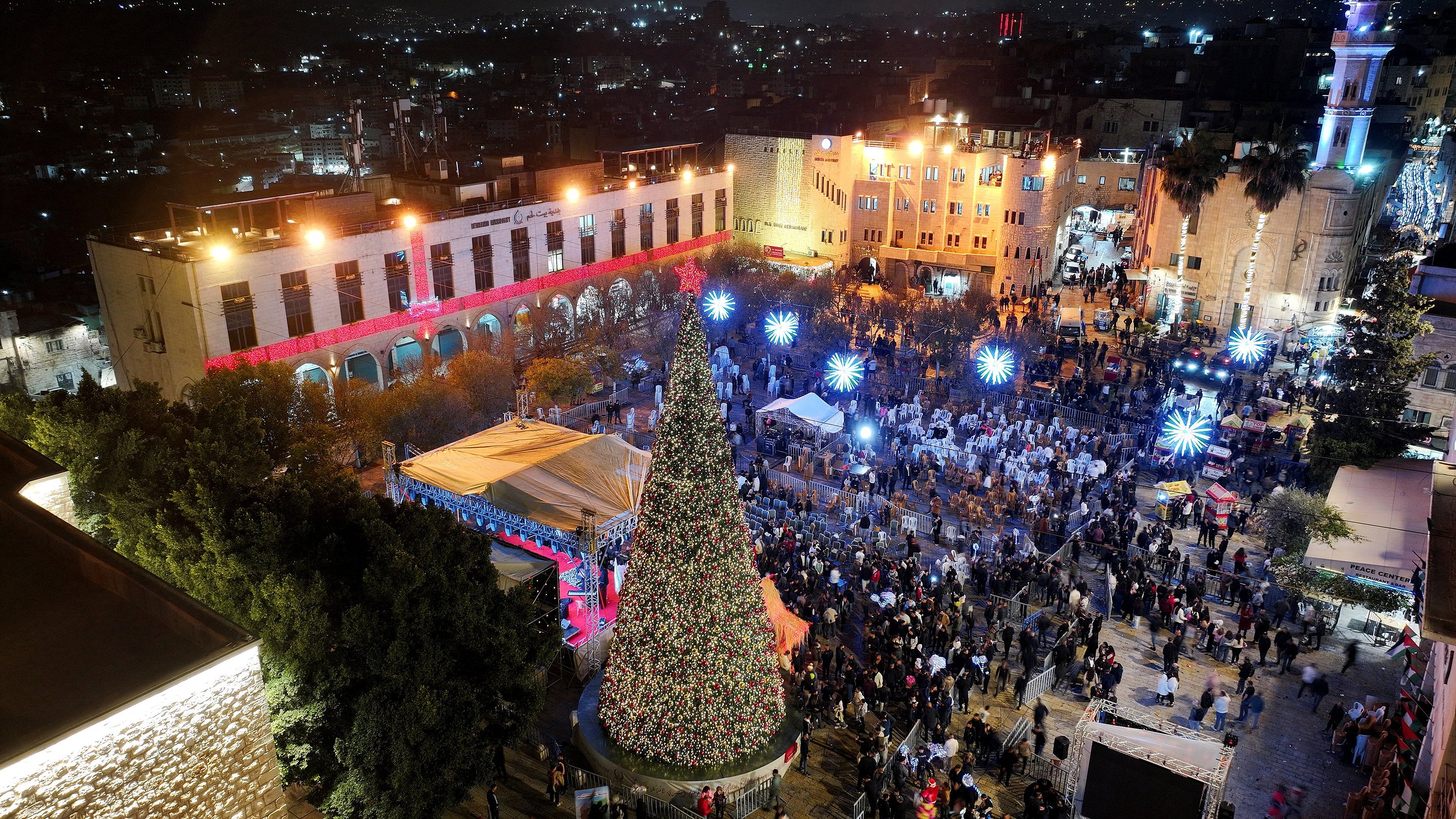 All Christmas festivities, other than the traditional religious ceremonies, had been previously canceled in light of the war in Gaza, but on Dec. 6 thousands of mostly local residents attended the official Christmas tree lighting ceremony for the first time in two years. Festive holiday lights flashed above the crowd, "Santas" handed out candied apples, and families took pictures in front of the twinkling tree and the Nativity scene creche.