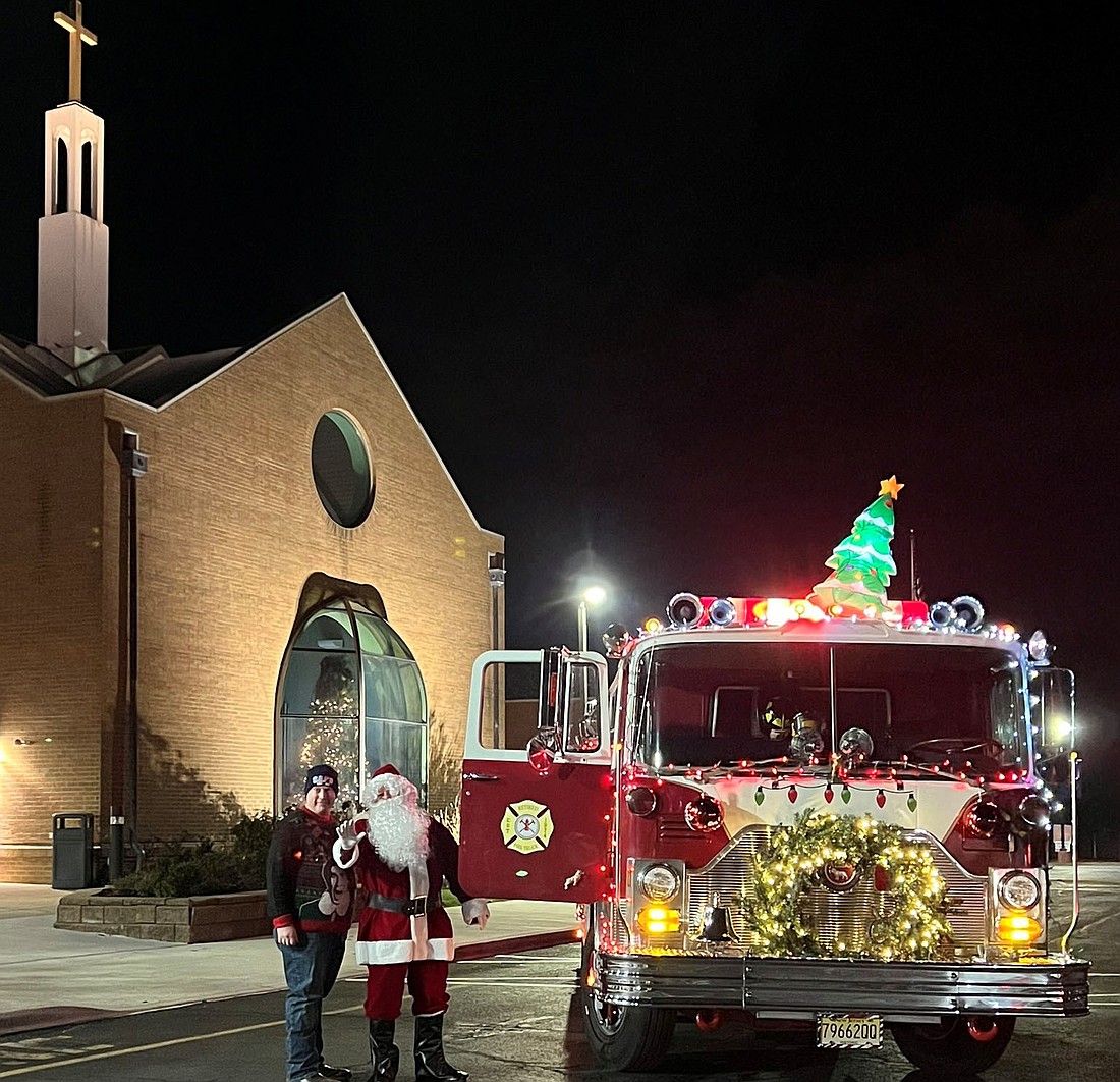 The Christmas tree on the campus of St. Benedict Parish and School, Holmdel.Arriving on a fire truck, Santa Claus made a dramatic appearance during the annual Christmas tree lighting at St. Benedict Parish and School, Holmdel, the weekend of Dec. 6-7.