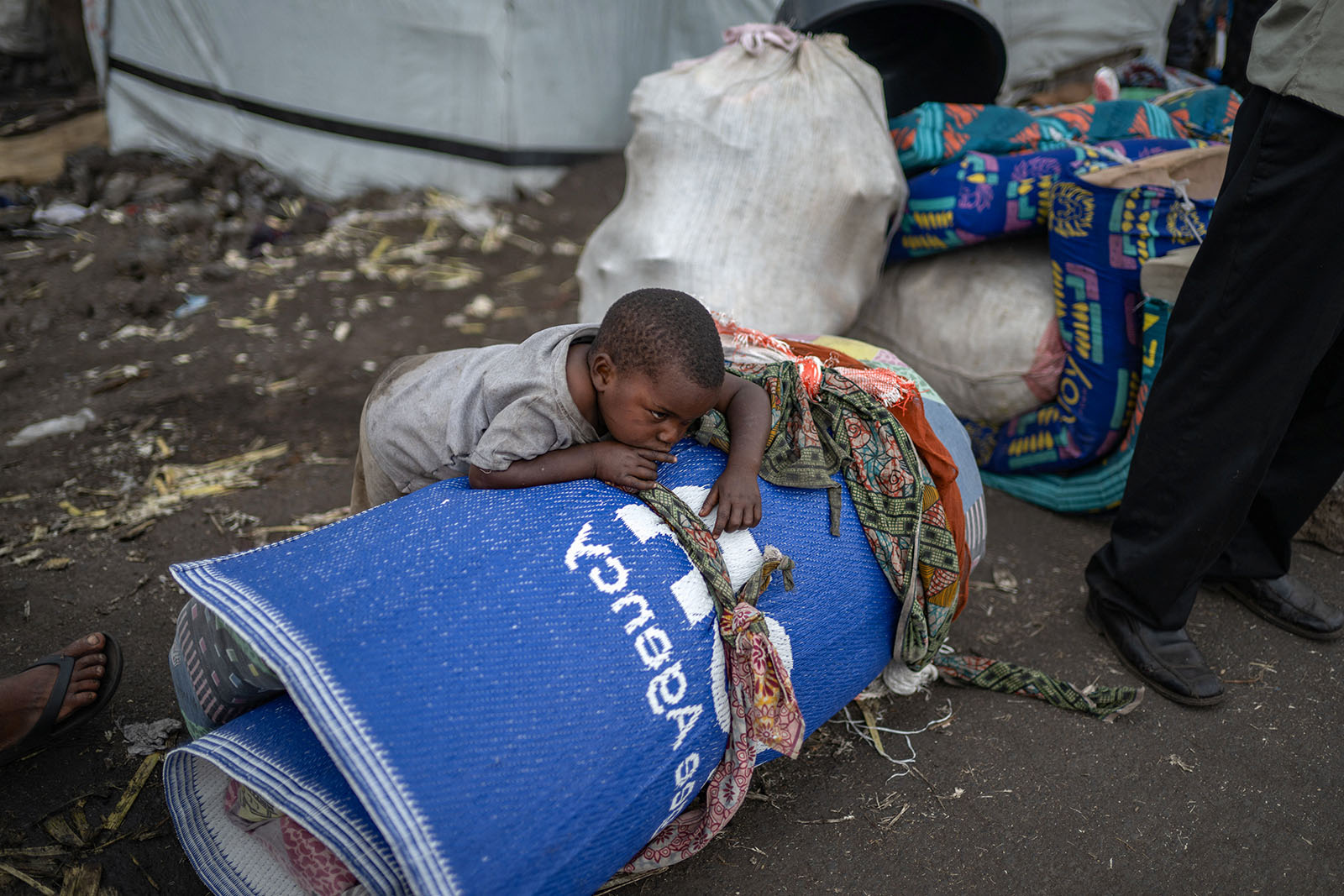A Congolese child, displaced by recent clashes between the M23 rebels and the armed forces of the Democratic Republic of the Congo, gestures as he prepares to leave a camp Feb. 12, 2025, after the displaced living there were instructed by M23 rebels to vacate camps on the outskirts of Goma, Congo. OSV News photo/Reuters