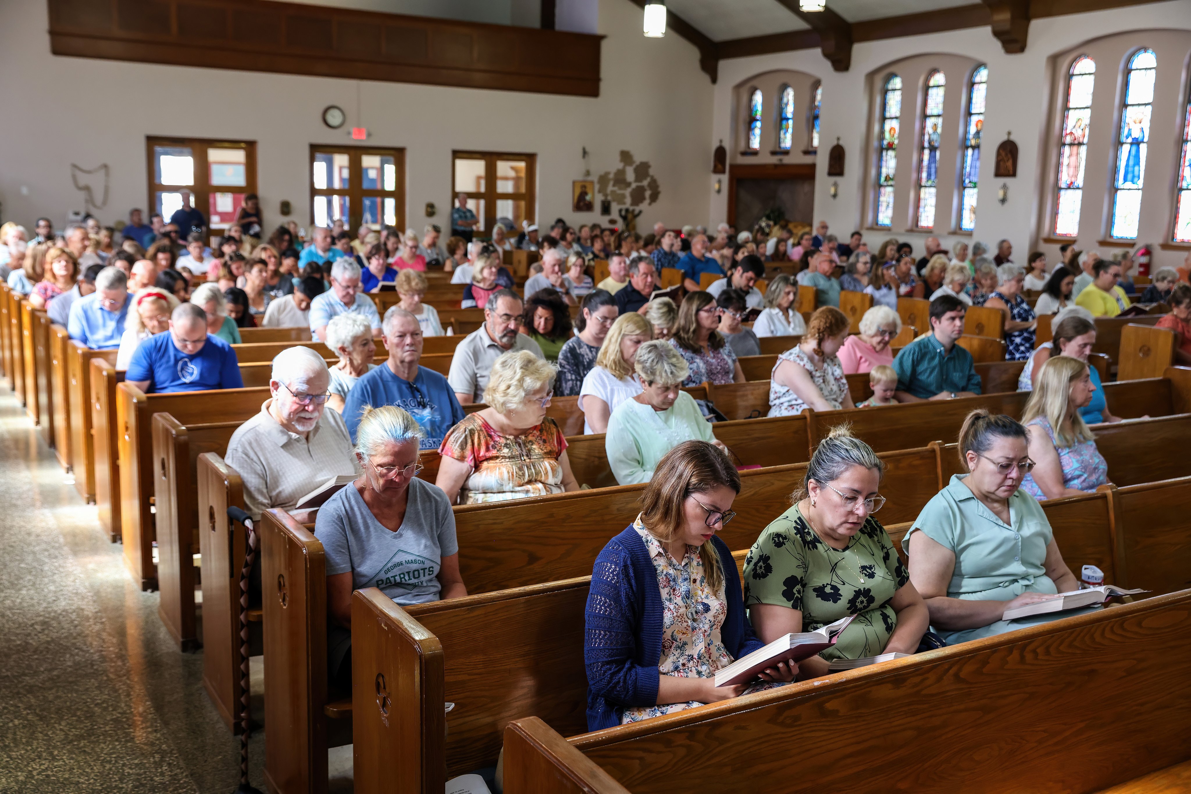 Conventual Franciscan Father Michael Gerard Lorentsen, pastor, reports, “Our Sunday Mass attendance almost doubles in each of our two churches. In the first weekend in July, all four English Mases were full. This will continue until the end of August, when college and university students return to school.”