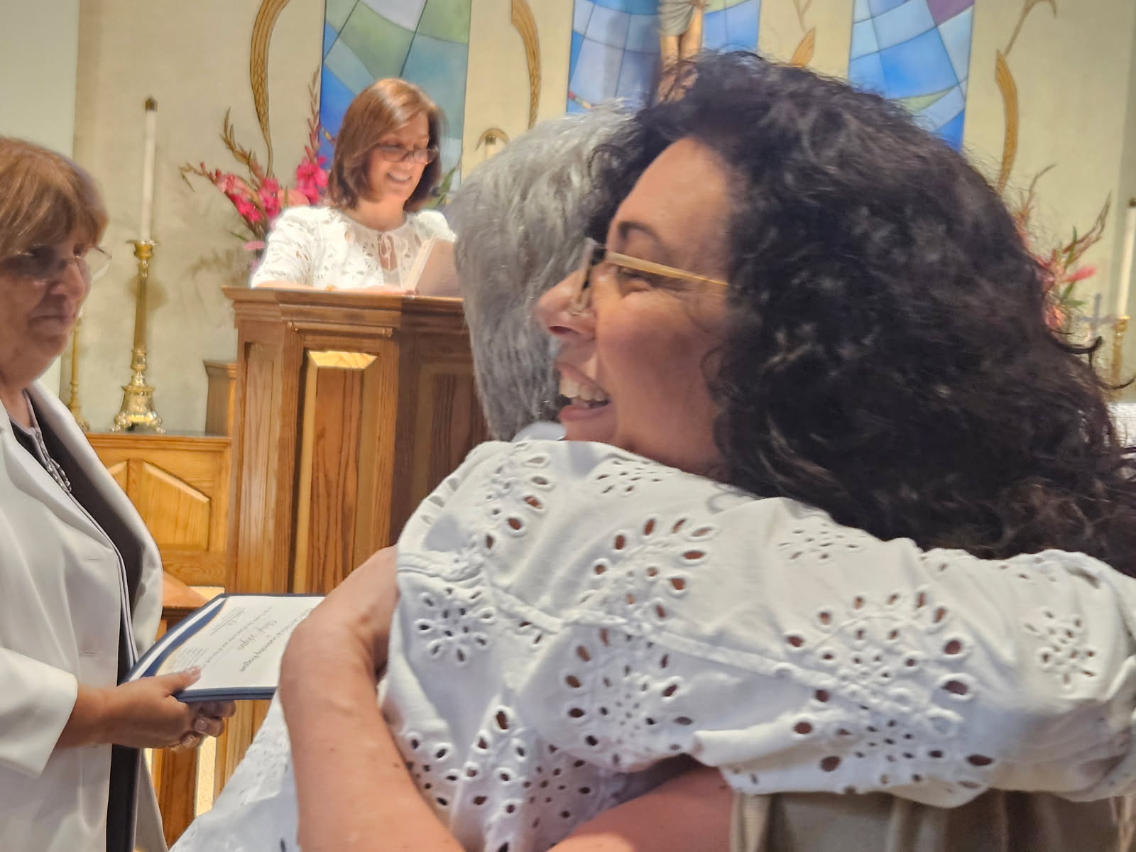 Laura Randazzo, smiles after receiving her certificate for completing the diocesan Parish Catechetical Leadership Program.