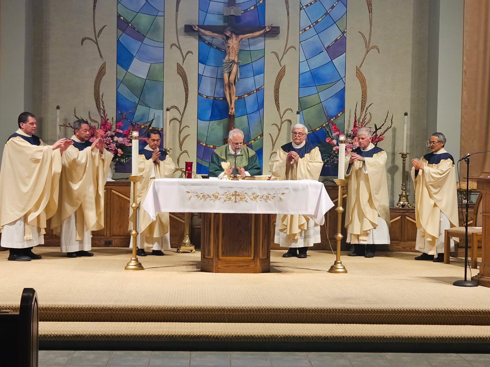 Priests of the Diocese concelebrate the June 12 Mass in St. Catherine of Siena Church. Mary Stadnyk photosTen women serving in catechetical ministry in their parish communities were honored for having completed the diocesan Parish Catechetical Leadership Program. A Mass was celebrated June 12 in St. Catherine of Siena Church, Farmingdale, by Msgr. Sam Sirianni, rector of St. Robert Bellarmine Co-Cathedral, Freehold.