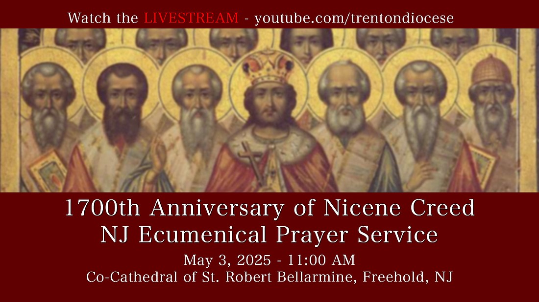 Bishop David M. O'Connell, C.M., will preside over the service hosted in St. Robert Bellarmine Co-Cathedral, Freehold. The “We Believe in One God” gathering will include Morning Prayer and two homilies – one each from the Western and Eastern Rite – and the praying of the Nicene Creed in both Greek and English by the assembly.