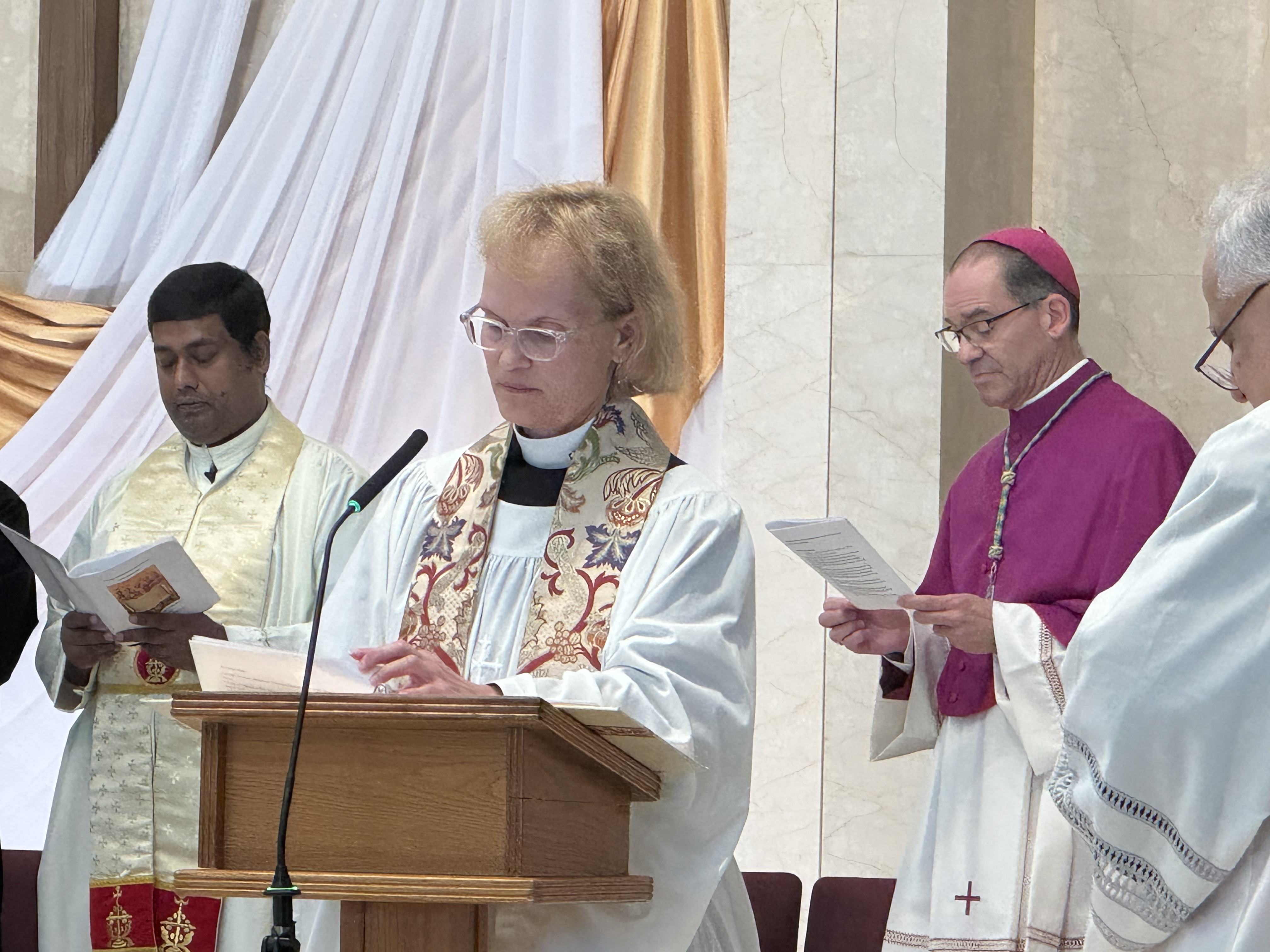 At the lectern is the Rev. Diana L. Wilcox, rector of Christ Episcopal Church of Bloomfield and Glen Ridge. The Nicene Creed, a profession of faith among major Christian denominations, is an example of unity among churches, said participants in an ecumenical prayer service marking the 1,700th anniversary of the Council of Nicaea.PHOTO GALLERY: Nicaean Council 1700th anniversary prayer service