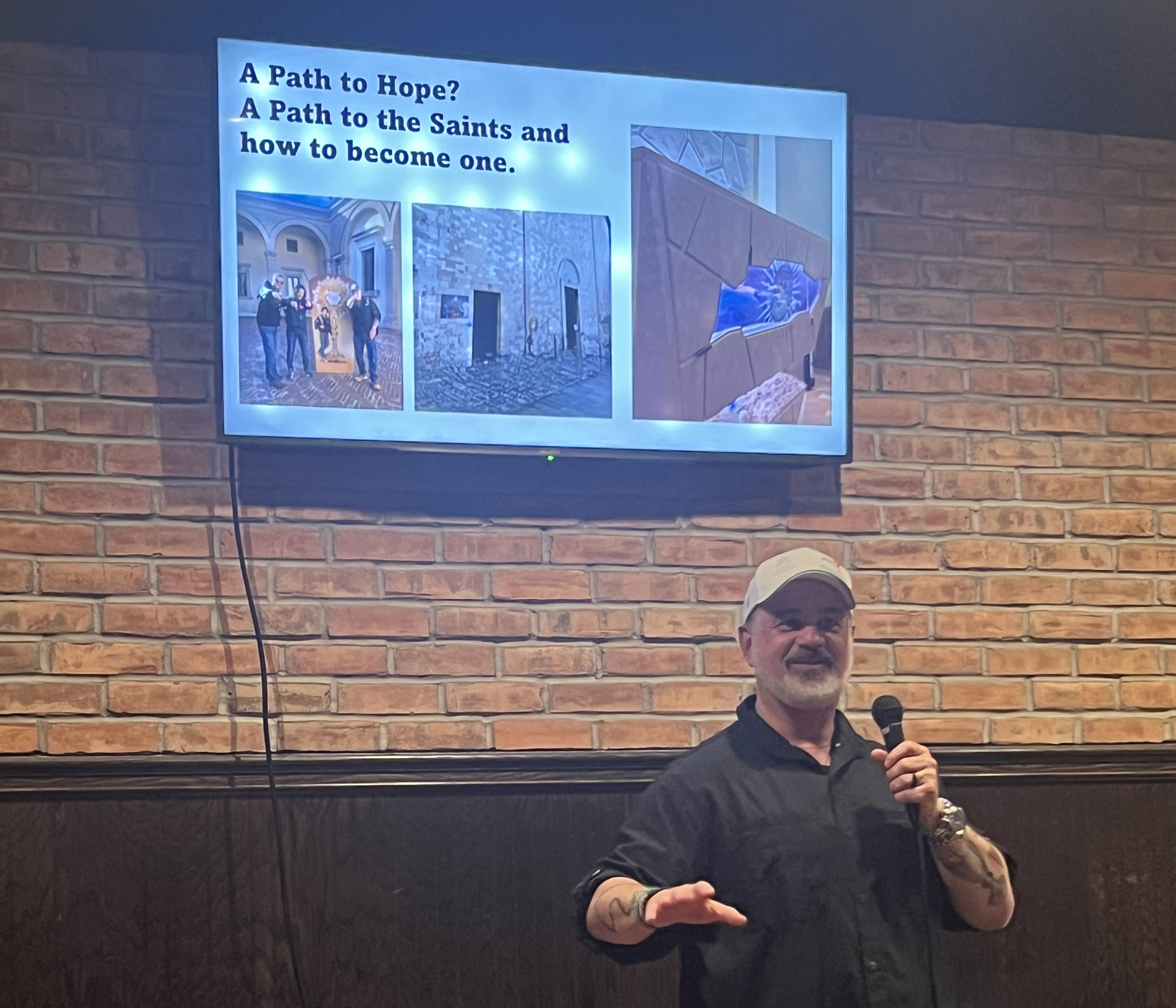 Siedlecki recounted his recent trip to Rome, which he had taken with his family and several other Holy Eucharist parishioners in late January. With the help of a few visual aids, he talked about the highlights of the journey, such as attending a papal audience with Pope Francis and attending Adoration at St. Peter’s Basilica.