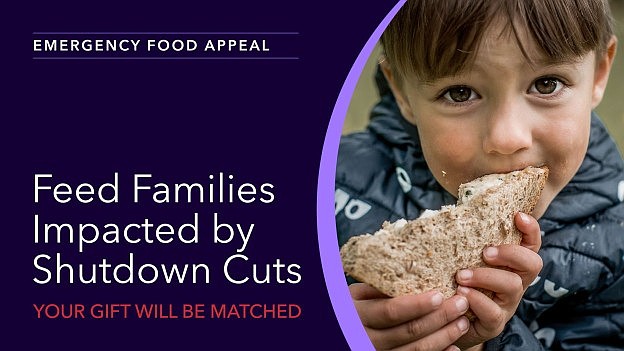 Your gift today will be matched dollar for dollar to provide twice the meals. A $50 donation can feed a family of four for more than a week.