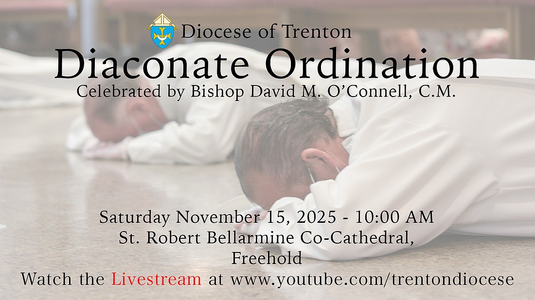 When Bishop David M. O’Connell, C.M., ordains nine men as deacons Nov. 15, their Mass of Ordination, starting at 10 a.m. in St. Robert Bellarmine Co-Cathedral, Freehold, will be livestreamed HERE.