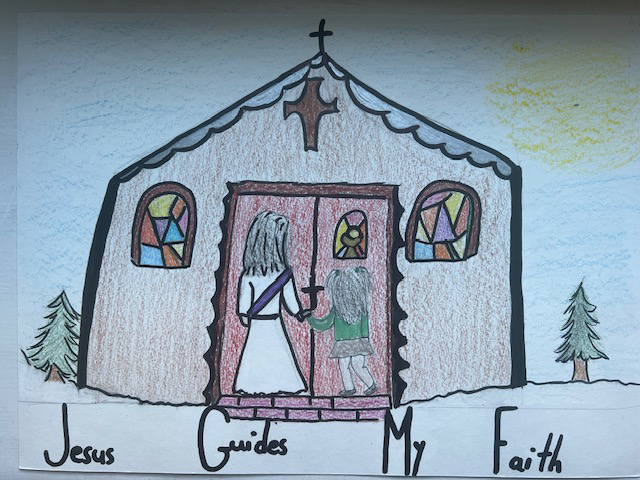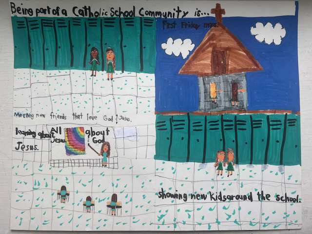 Students in grades K-3 were asked to submit artwork that addressed the question, “What does it mean to be a part of a Catholic school community? Students in grades 4-5, wrote essays on “How does your Catholic education help you to serve your community?” Students in grades 6-wrote essays on “How will you use your Catholic education to build your community?”