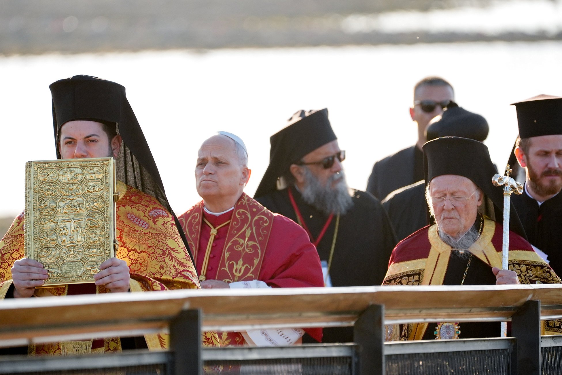Speaking after the patriarch, Pope Leo told his fellow Christian leaders that at a time when humanity is "afflicted by violence and conflict," the world "is crying out for reconciliation."