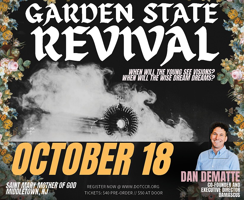 The Diocese of Trenton, Catholic Charismatic Renewal will hold the 2025 NJ Catholic Charismatic Conference Garden State Revival Oct. 18 from 9:30 a.m.-4:30 p.m. in St. Mary, Mother of God Church, Middletown.