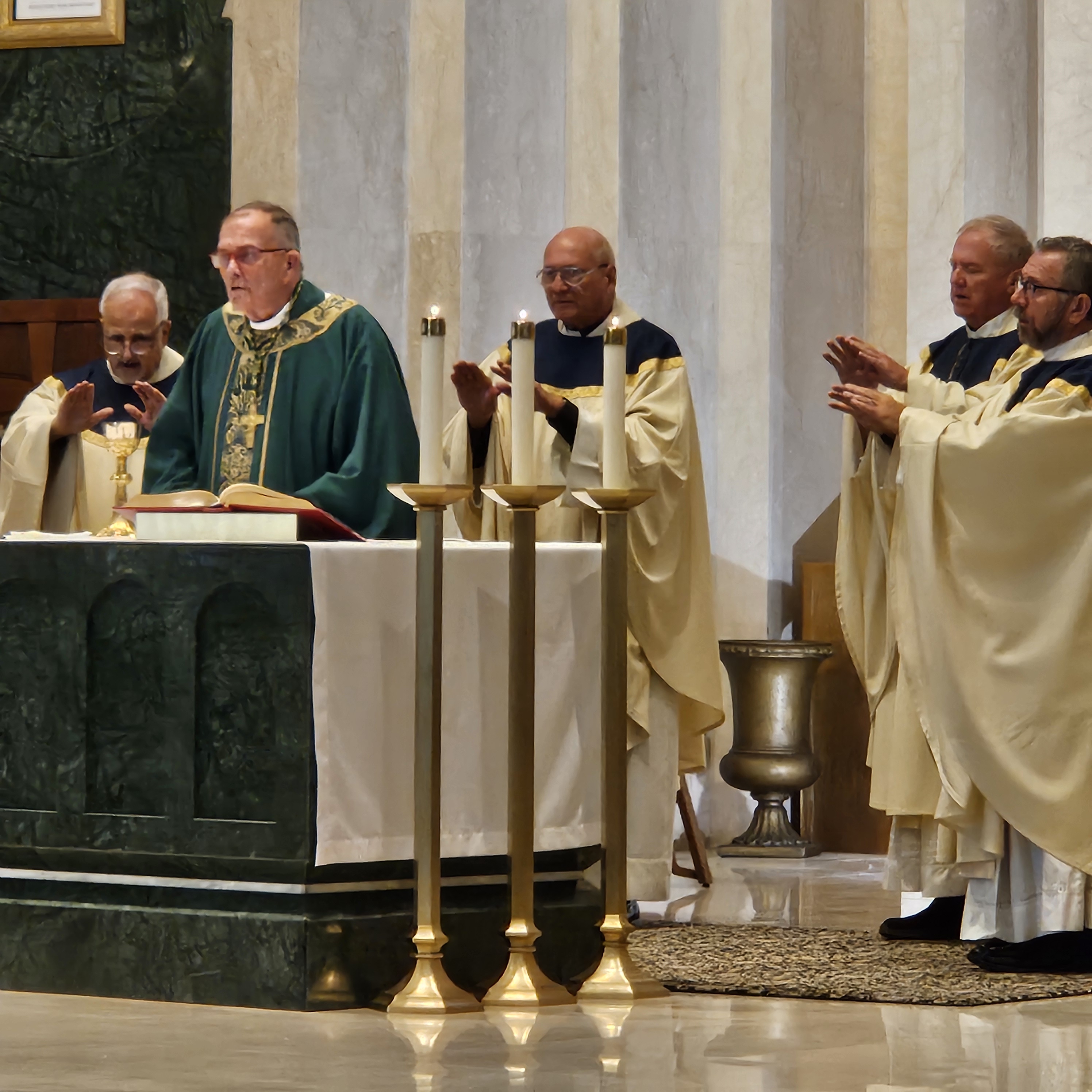 Bishop O'Connell celebrates a Mass of Thanksgiving marking the 100th anniversary of the Trenton Diocesan Council of Parent Teacher Associations. He is joined at the altar by concelebrating priests from left, Msgr. Sam Sirianni, rector of St. Robert Bellarmine Co-Cathedral; Msgr. Edward Arnister, pastor of St. Rose Parish, Belmar; Father Scott Shaffer, pastor of St. Joseph Parish, Toms River, and Msgr. Joseph Rosie, episcopal vicar for Monmouth County and pastor of St. James Parish, Red Bank. Mary Stadnyk photos Reflecting on the 100-year history of the Trenton Diocesan Council of Parent Teacher Associations, Dr. Vincent de Paul Schmidt commended the council for its steadfast work and how it "has stood at the heart of the Catholic schools in the Diocese, helping children thrive, lifting up teachers and ensuring that Catholic education in the Diocese remains strong and vibrant."