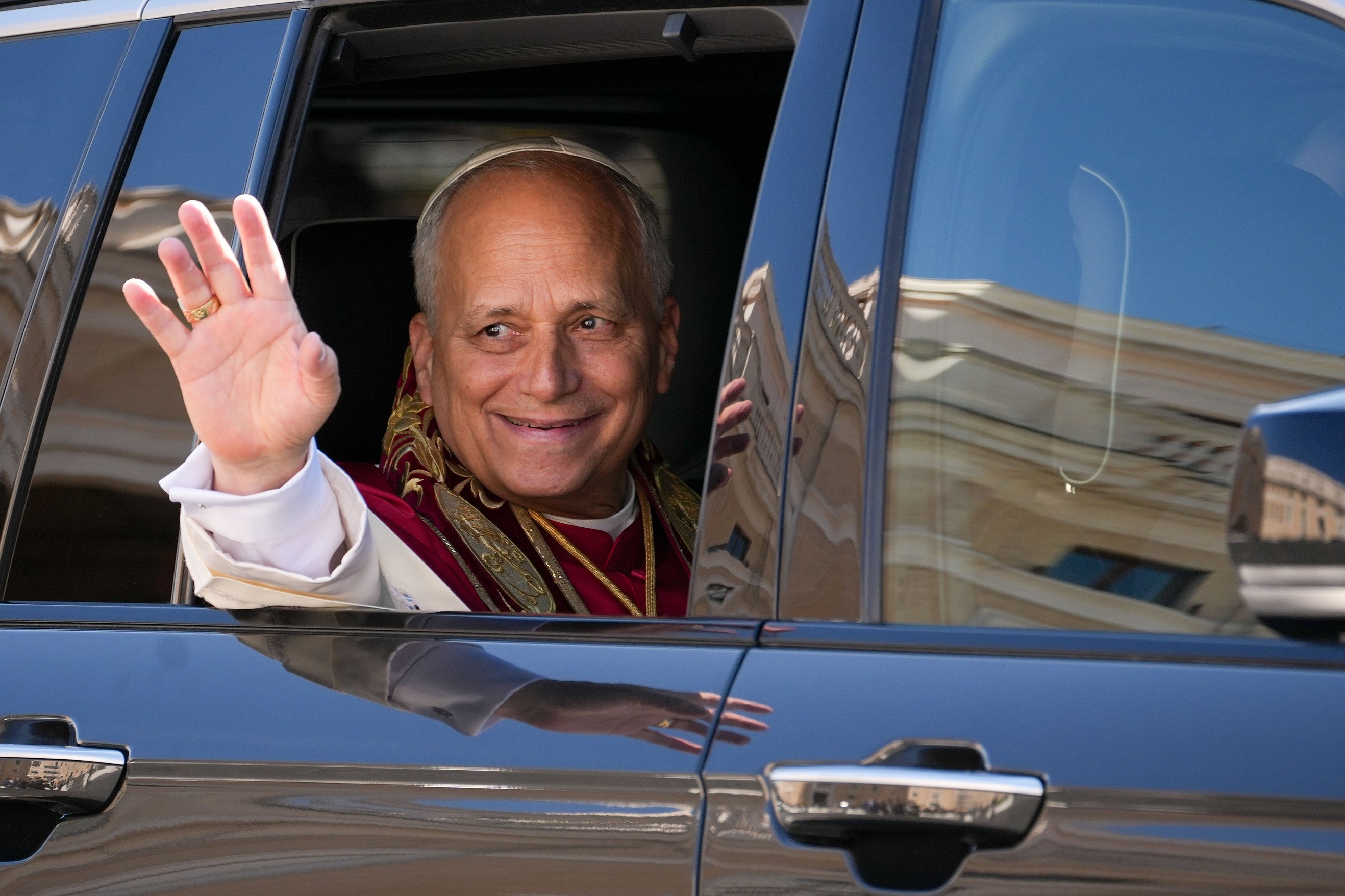 Embracing all the pomp of an official visit, Pope Leo began his 2-mile journey to the palace by being greeted by Italian government officials just outside St. Peter's Square and then was escorted in a motorcade by the Italian military. The Italian cavalry, mounted on horseback, led the Pope's car into the palace courtyard.