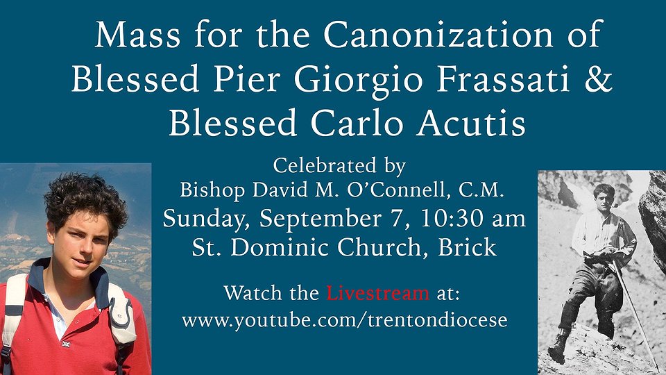 The canonization of Blessed Pier Giorgio Frassati and Blessed Carlo Acutis, the Church’s first Millennial saint, will be celebrated in the Diocese with a Mass on Sept. 7 at 10:30 a.m. in St. Dominic Church in Brick, home of the Diocesan Shrine of Carlo Acutis.