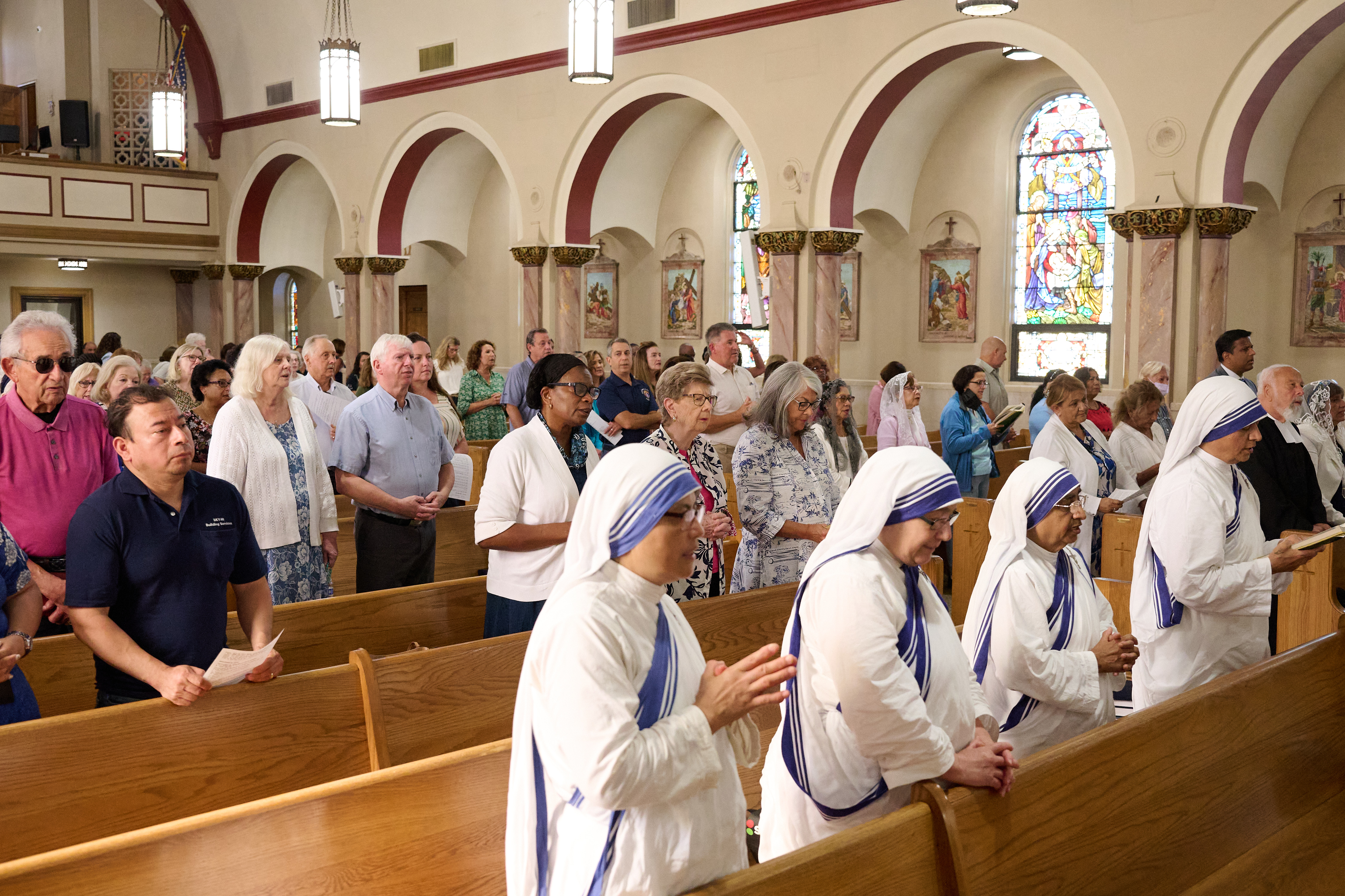 Present for the Mass held in Our Lady of Mount Carmel Church, Asbury Park, were the Missionaries of Charity who live and serve in the area; those who volunteer with the Sisters in their work: as well as lay Missionaries of Charity, parishioners and a contingent of students and faculty from Our Lady of Mount Carmel School.