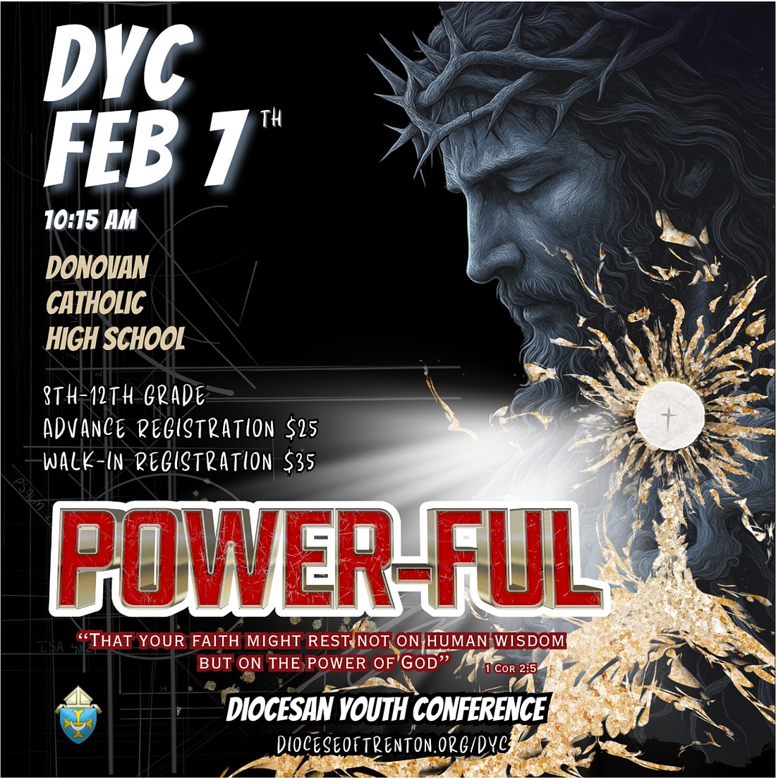 Registration for DYC by Jan. 21 includes a free DYC T-shirt; Feb. 2 is the last day for advance registration for $25. Individual walk-in registration at DYC is $35. Further details and registration forms are available at dioceseoftrenton.org/dycregistration.