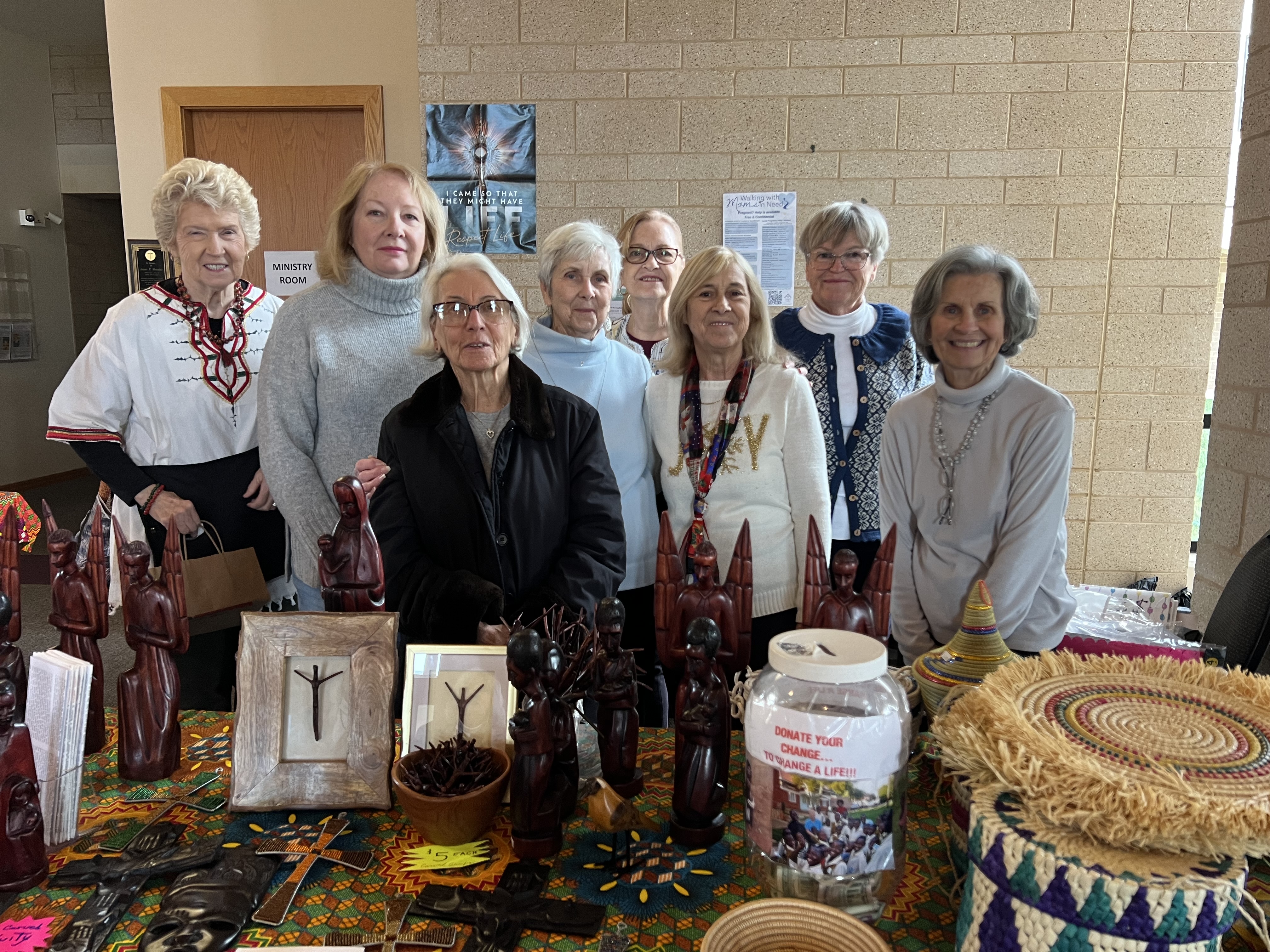 Mary Goss, left, and volunteers help organize a semi-annual craft sale of handmade items by Ugandan women in St. Luke Parish, Toms River.